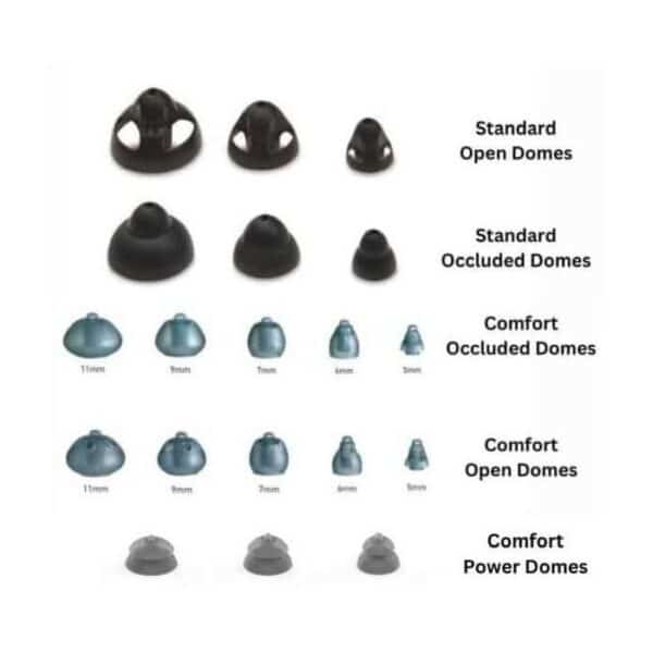 Starkey Standard Domes and Comfort Domes are both compatible with all RIC and thin tube Starkey hearing aids including Destiny, Zon, S Series, E Series, X Series, Xino, 3 Series, Halo, Muse, Livio, Evolv, Genesis, Edge and Omega. Standard and Comfort Domes are interchangeable.